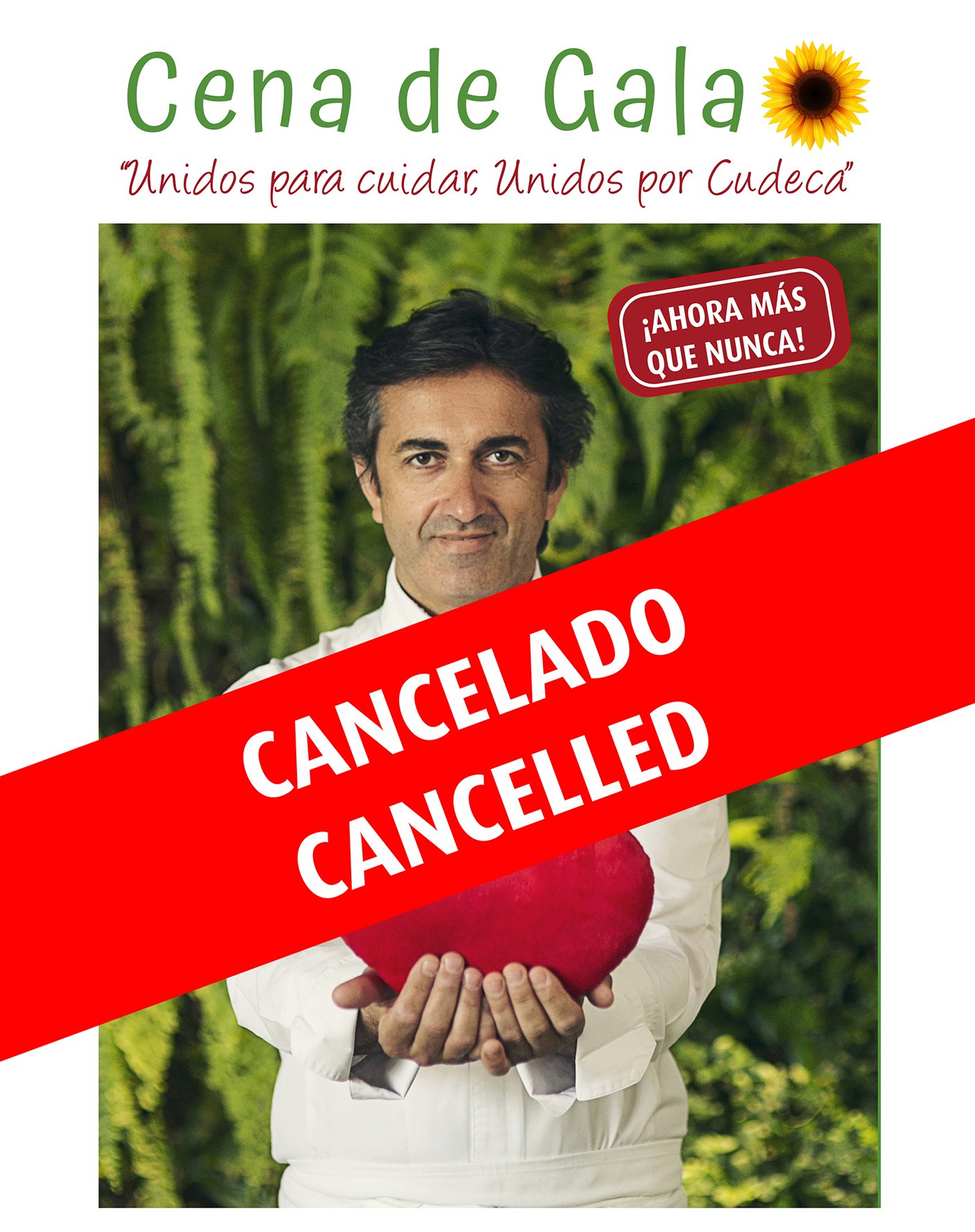 Desde la Dirección de Cudeca, debemos informar de que la Cena de Gala Benéfica de Cudeca, prevista para el próximo 4 de septiembre, ha sido cancelada, por la situación actual en relación a la Covid19, que nos obliga a todos a extremar las medidas de precaución.