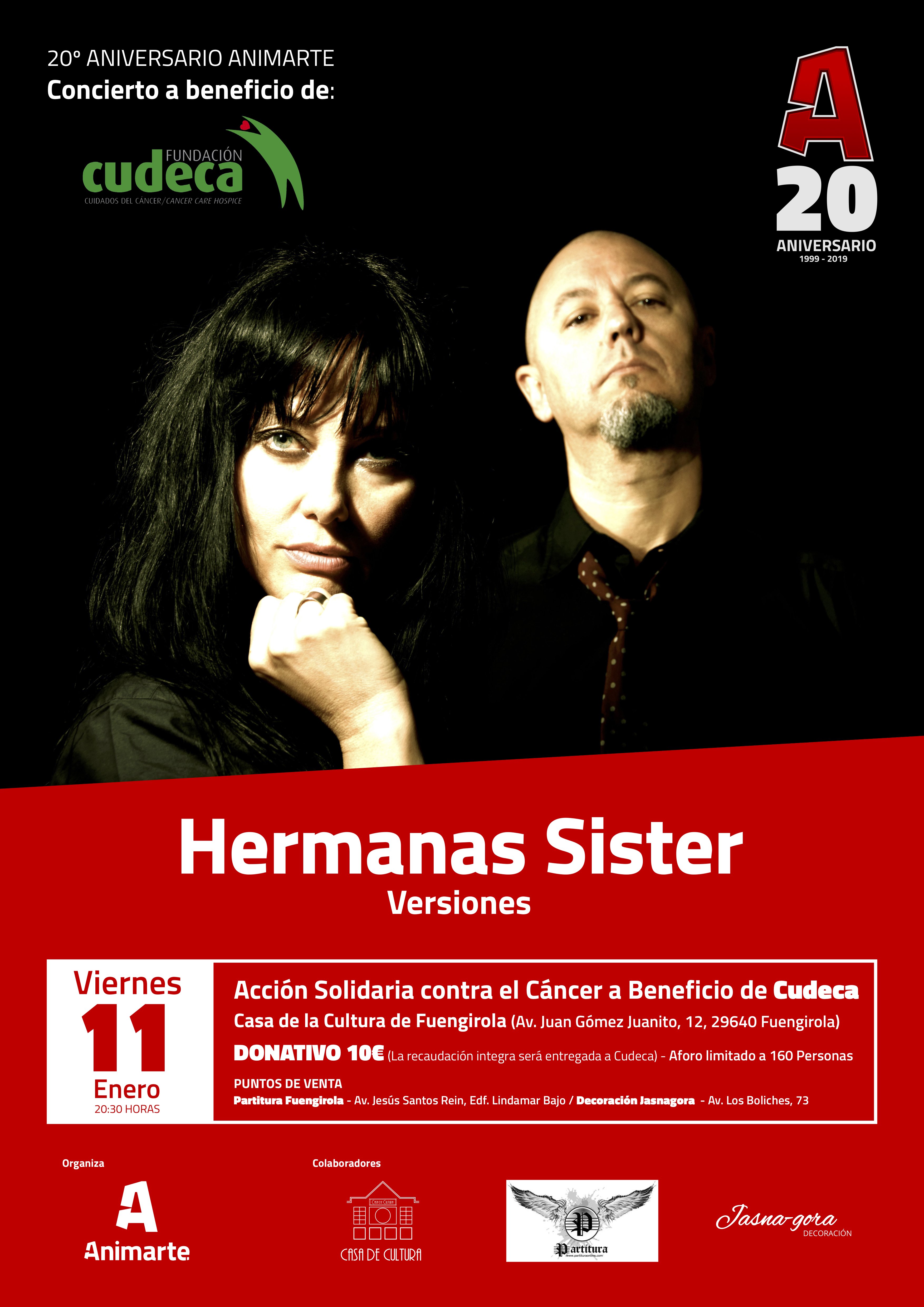 On Friday, January 11 at 8.30pm in the Casa de la Cultura in Fuengirola, the Malaga rock band Hermanas Sister will be performing a charity concert in aid of the Cudeca Cancer Care Hospice, with the support of the Fuengirola town hall and sponsored by Animarte in commemoration of its 20 years of work in the entertainment world.