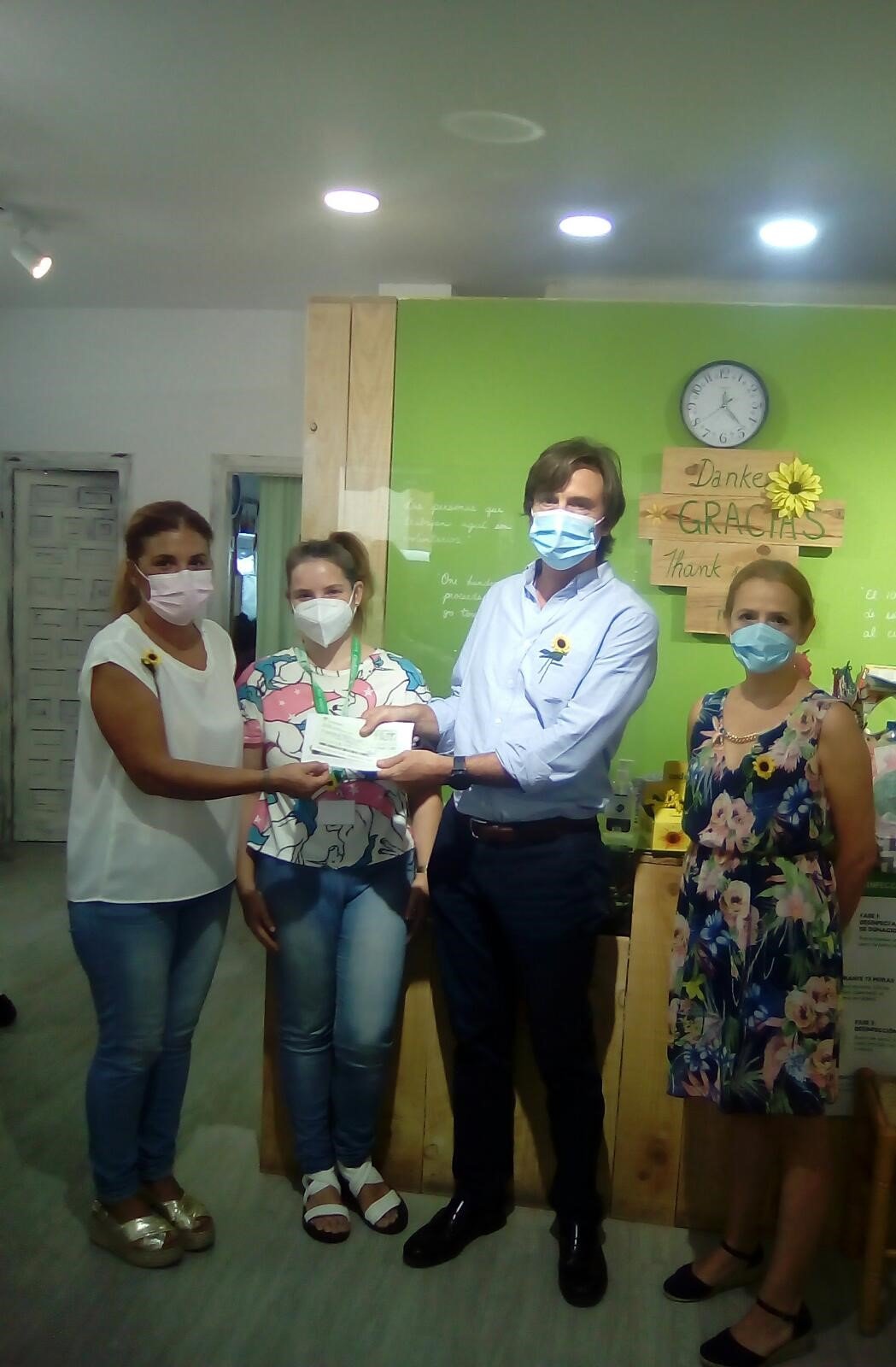 La entrega de este cheque tuvo lugar en la Tienda Benéfica de la Fundación en Los Boliches, y asistieron al acto, por parte de la Hermandad, Lydia Vega, Hermana Mayor y Maria del Carmen Pérez, Teniente Hermana Mayor; y por parte de la Fundación, asistió el Subgerente y Director Financiero, Rafael Olalla, quién recogió el cheque y agradeció el gesto en nombre del patronato de la fundación, y la Encargada de la Tienda Benéfica, Carmen Rodríguez.