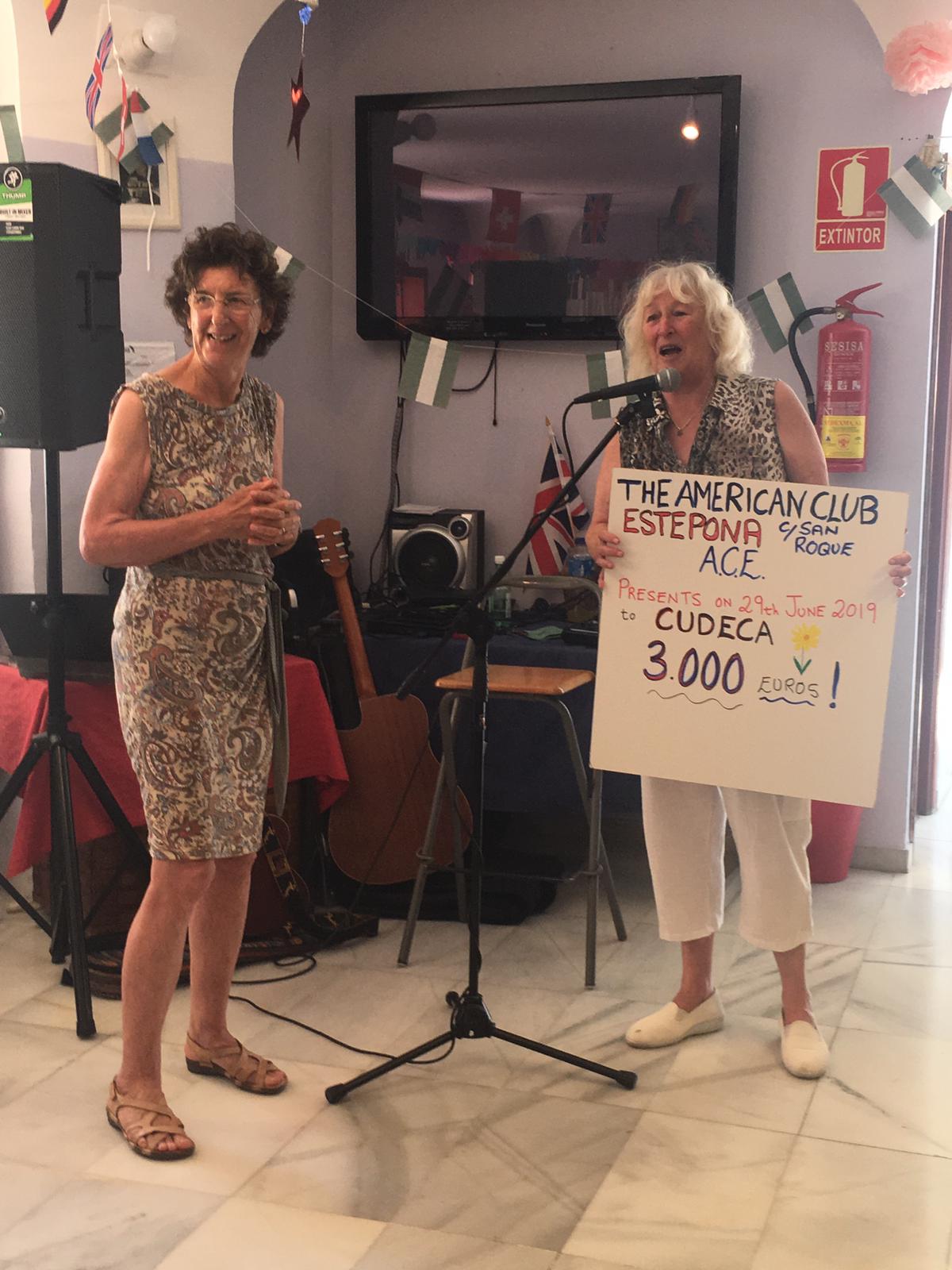 El 29 de junio, el Club Americano de Estepona entregó a nuestra vicepresidente, Susan Hannam, la donación de 3.000€