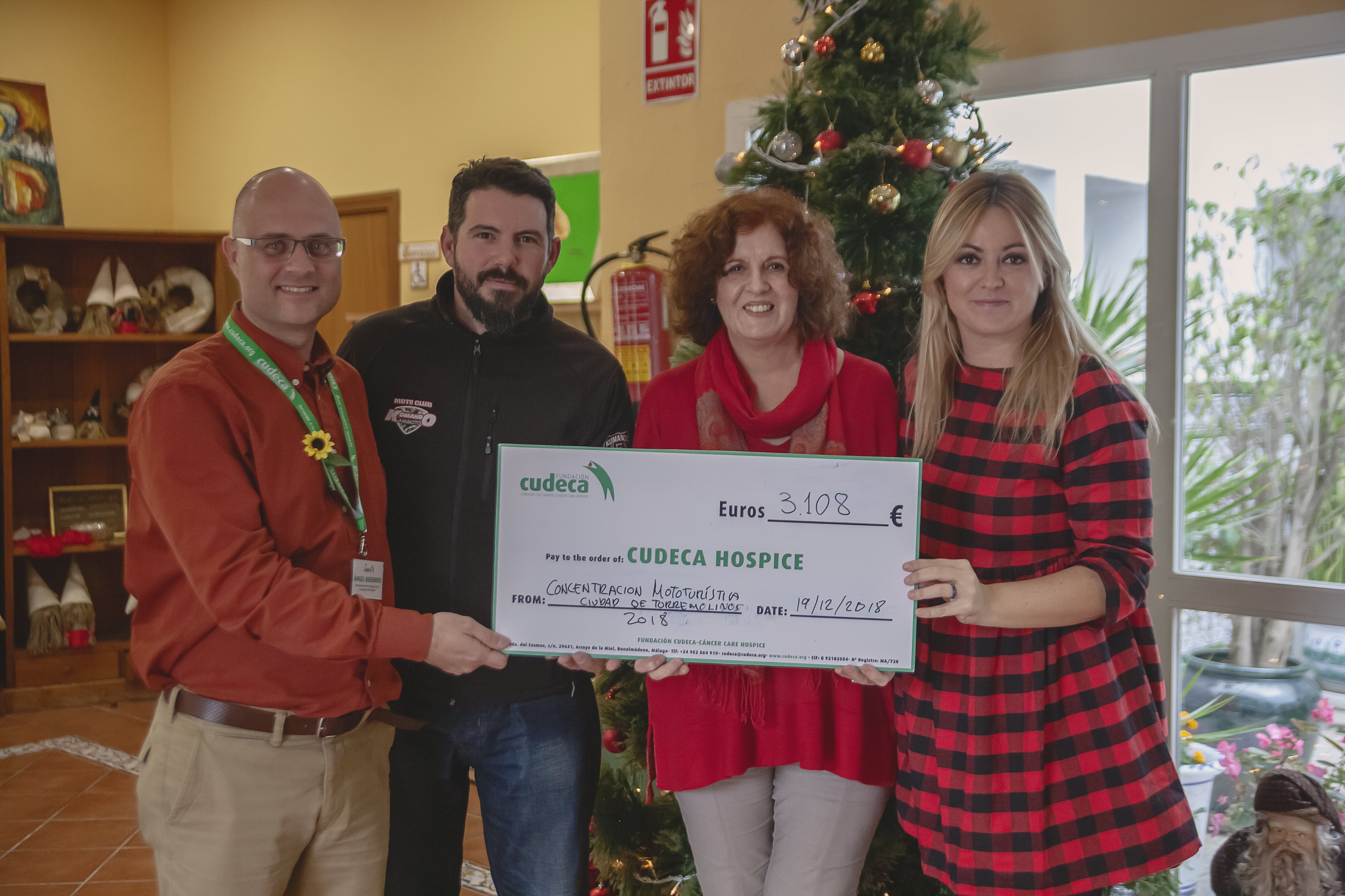Ayer 19 de diciembre la concejala de cultura del ayuntamiento de Torremolinos Aida Blanes y el presidente del Moto Club Komando Amimoto, David Cantos, hicieron entrega en el Centro de Cuidados paliativos de la Fundación los fondos recaudados en la VIII Concentración Mototurística ciudad de Torremolinos que se celebró en el Palacio de Congresos de Torremolinos que tuvo lugar el pasado mes de octubre.