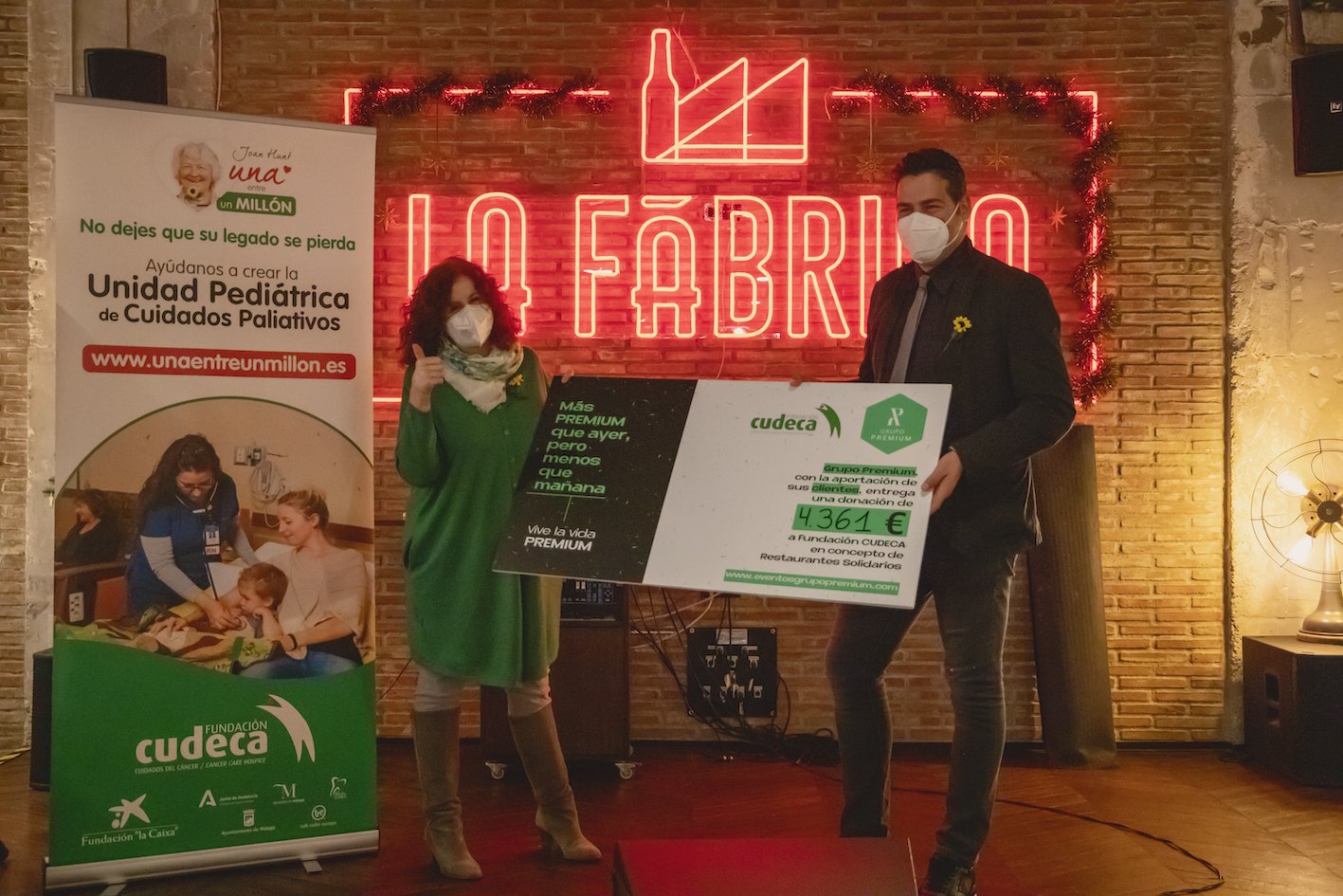 La Gerente y Directora Médico de la Fundacion, Marisa Martín, ha recogido el cheque por valor de 4.361 euros de manos de Juan García en la Fabrica de la Cerveza, esta cantidad se sumará a la actual campaña "Joan Hunt, Una ente un millón" que tiene como propósito crear una unidad pediátrica de cuidados paliativos para niños en la Fundación Cudeca durante 4 años.