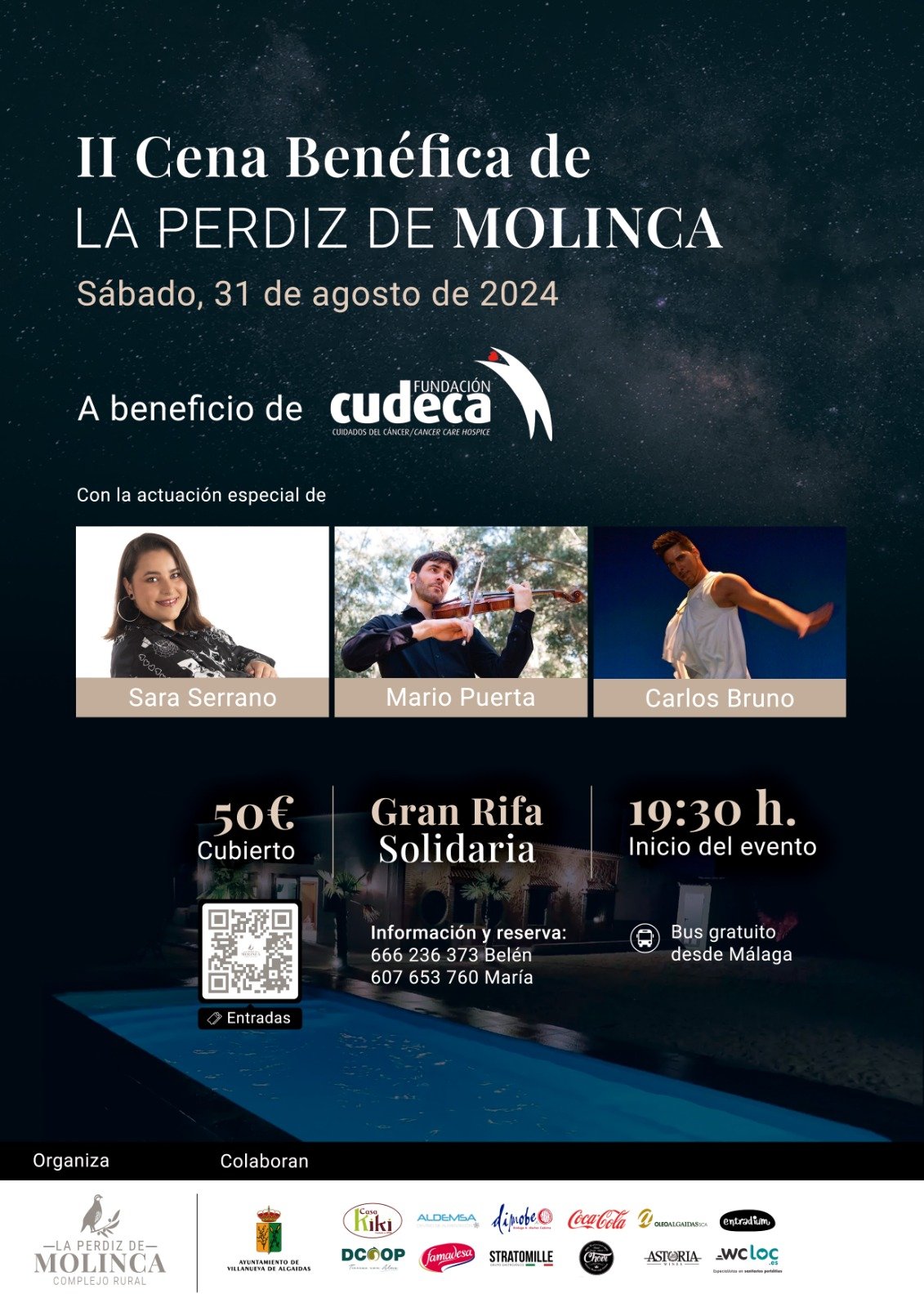 El próximo 31 de agosto de 2024, La Perdiz de Molinca será el escenario de la II Cena Benéfica, un evento solidario en favor de la Fundación Cudeca.