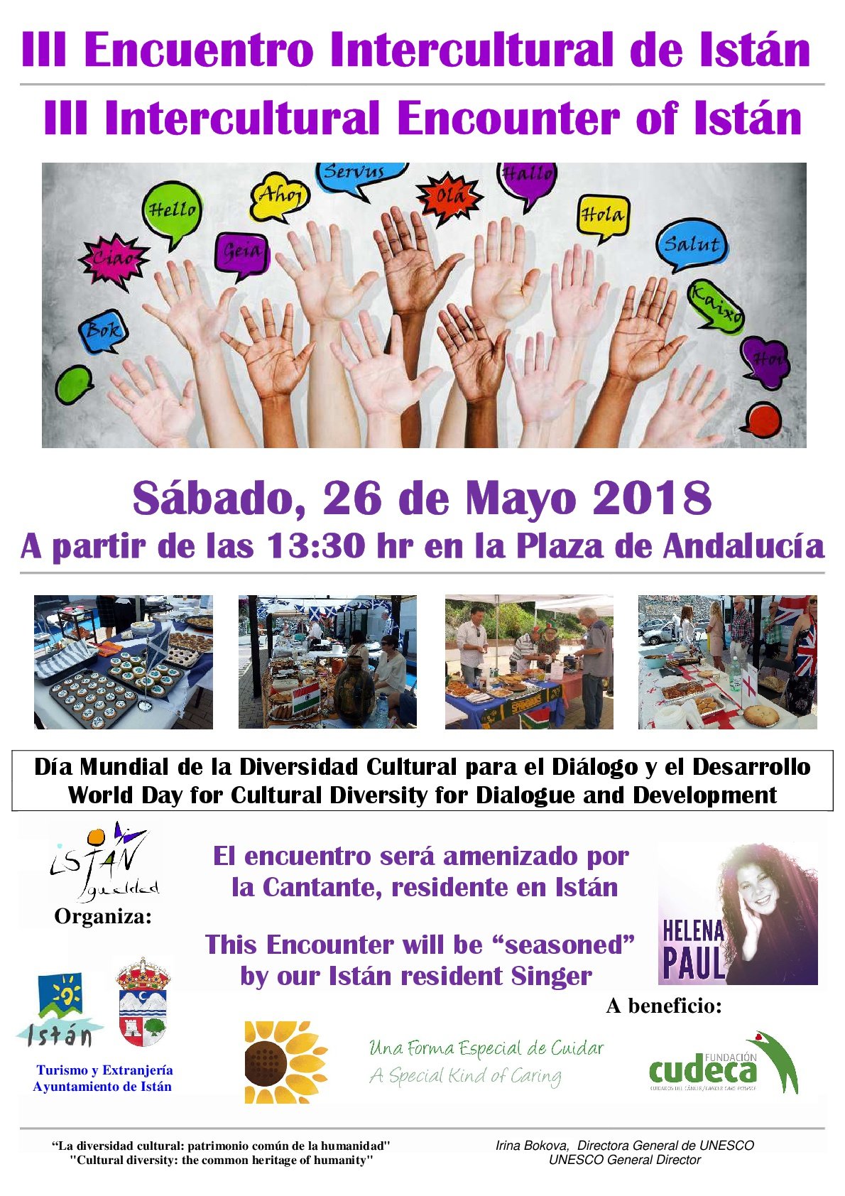 On Saturday May 26th Istan’s municipal Tourist Department celebrates the town’s 3rd Intercultural Encounter from 13:00 in the Plaza de Andalucia. The event sees the pueblo’s foreign residents sharing their customs, gastronomy, music and traditions with their Spanish neighbours and visitors from the coast, in aid of our hospice.