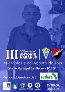 El 7 de Agosto la Unión Deportiva San Pedro de Alcántara celebró el III Memorial en recuerdo del presidente de honor D. Antonio Naranjo con un partido amistoso contra el Marbella F.C, ambos equipos senior.