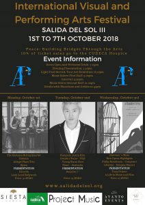 The theme of this year´s Festival is PEACE: BUILDING BRIDGES THROUGH THE ARTS. It is the most unique and innovative Visual and Performing Arts Festival in Spain, Salida del Sol III October 1st – 8th.