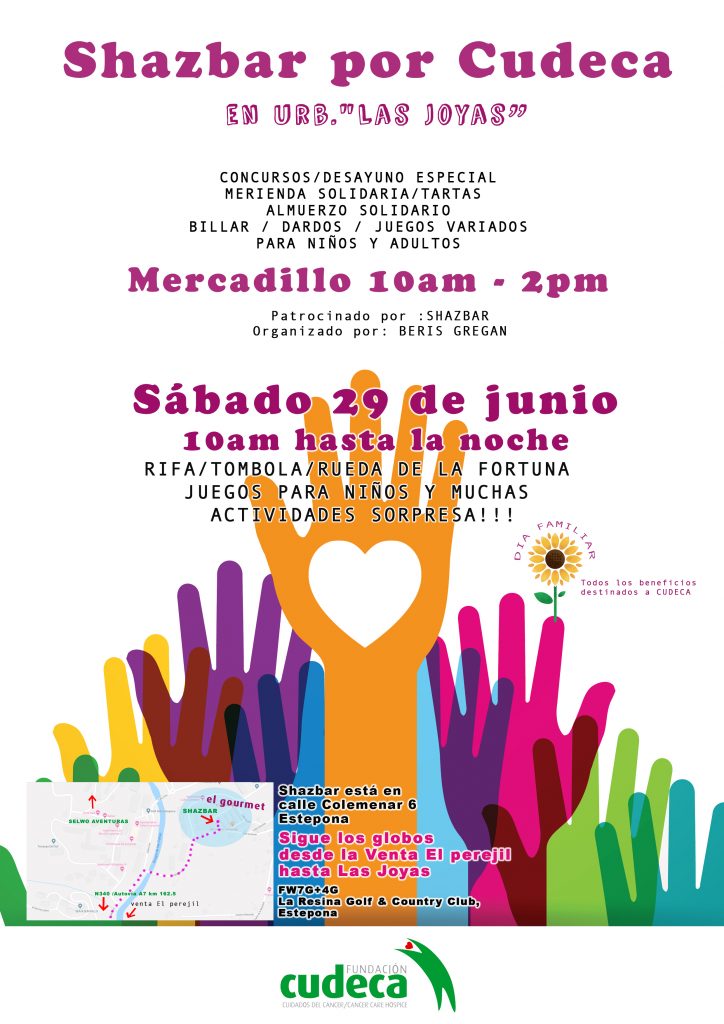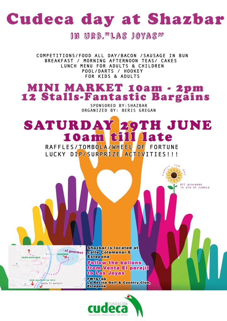 On saturday 29th june, the “Shazbar” together with Beris Gregan will celebrate a charity event from 10am at SHAZBAR in Urb. “Las joyas”, Estepona. This Fun Family day was born with the aim to raise funds to help The Cudeca Cancer Care Hospice.