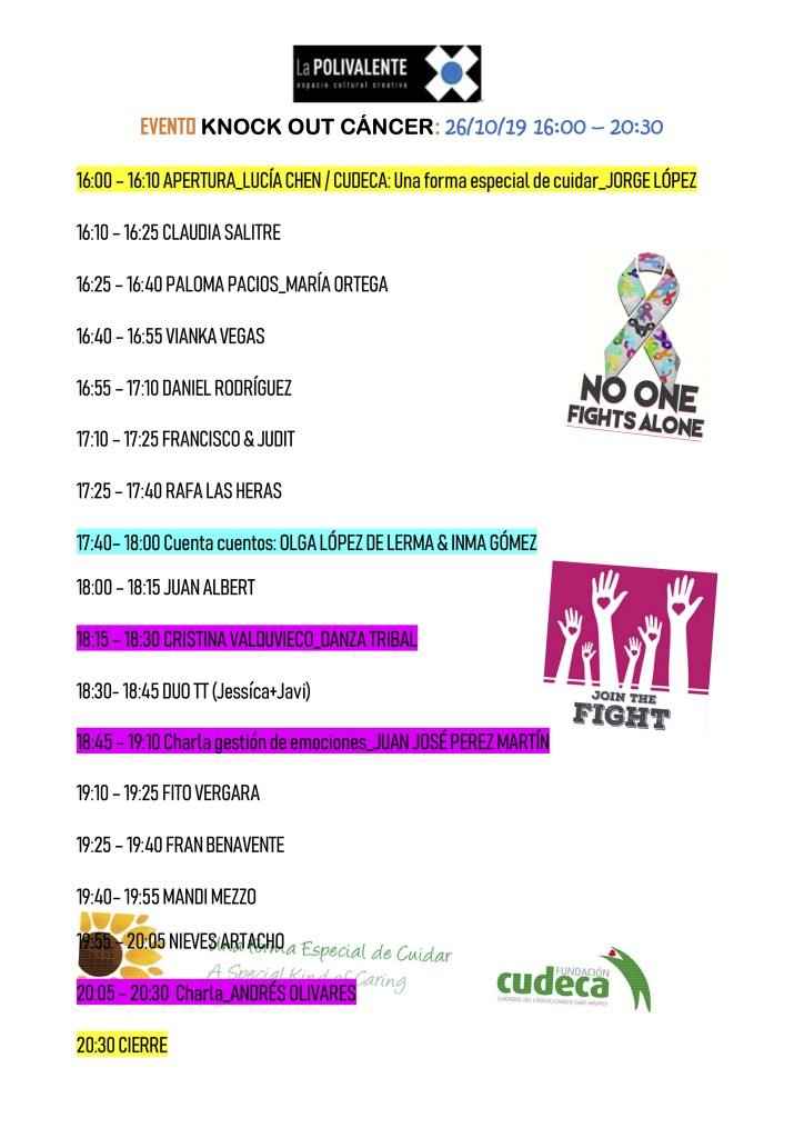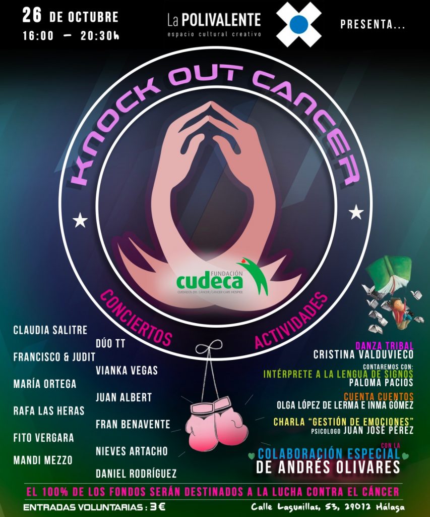 El próximo 26 de octubre en el espacio cultural La Polivalente en calle Lagunillas 53, Málaga se va a celebrar una jornada cultural a beneficio de la Fundación Cudeca - Cuidados del Cáncer.
