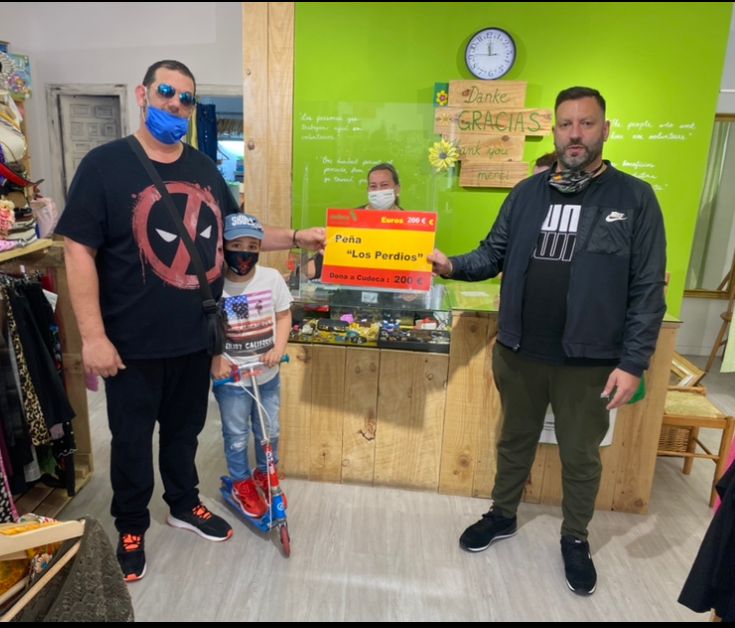 El pasado sábado, 13 de marzo, la Peña Los Perdíos nos hizo entrega de su donación de 200€ en la puerta de nuestra tienda de Los Boliches para que, atendiendo a nuestro reciente mensaje de emergencia causado por la presente pandemia, podamos  continuar cuidando a muchísimas personas que lo necesitan.