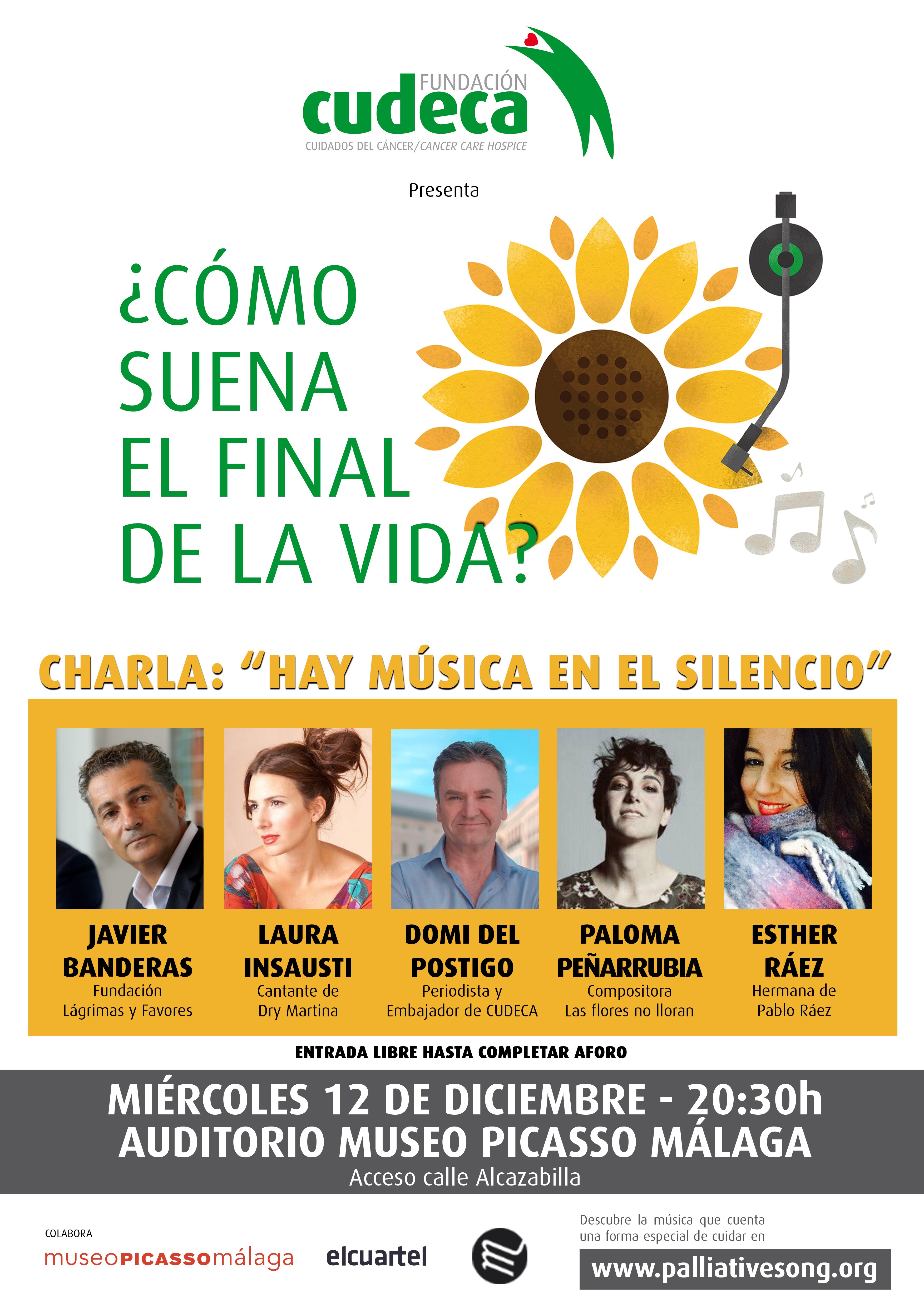 On Wednesday 12th December at 20:30h in the Auditorium of the Picasso Museum in Malaga, Cudeca Hospice will be presenting their new campaign "How does the end of life sound? . This presentation will be in Spanish.