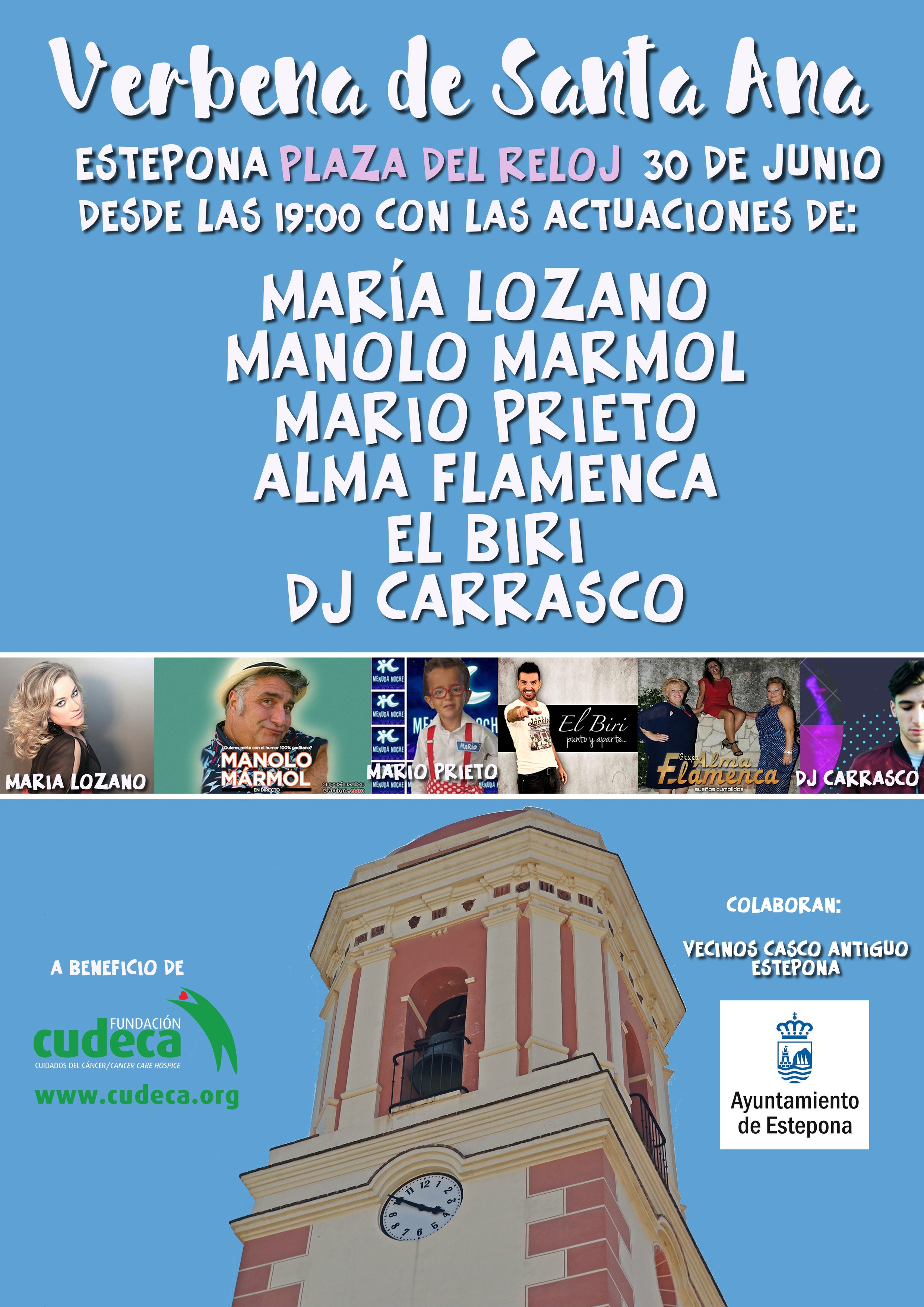 El 30 de junio tendrá lugar la Verbena Solidaria Vecinos de Santa Ana para ayudarnos a partir de las 19.00h en la Plaza del Reloj de Estepona.