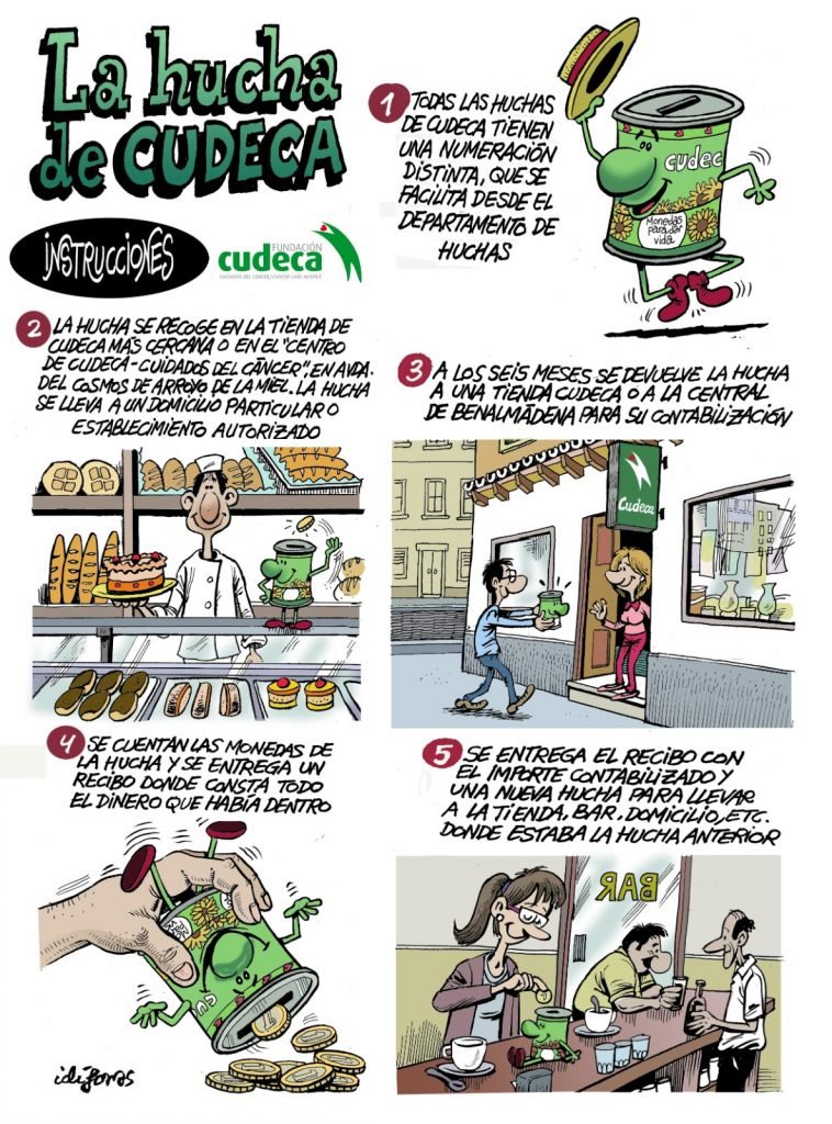 Es muy fácil: te entregamos una hucha, la dejas en un comercio, en tu casa, en tu oficina, etc., después de 6 meses la recoges y la devuelves a CUDECA, nosotros contamos sus monedas, te informamos de la recaudación y te entregamos otra vacía para volver a empezar.