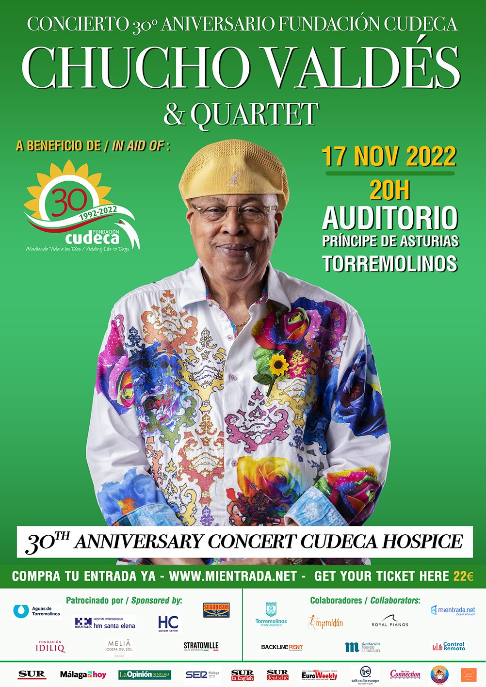 2022: This year and with the celebration of Cudeca's 30th anniversary, the Cuban artist answered the call of the foundation and Chucho responded with a resounding "yes" to a benefit concert in aid of the cause. This would be the second time that Cudeca's beloved ambassador has given a benefit concert in aid of the Foundation.
