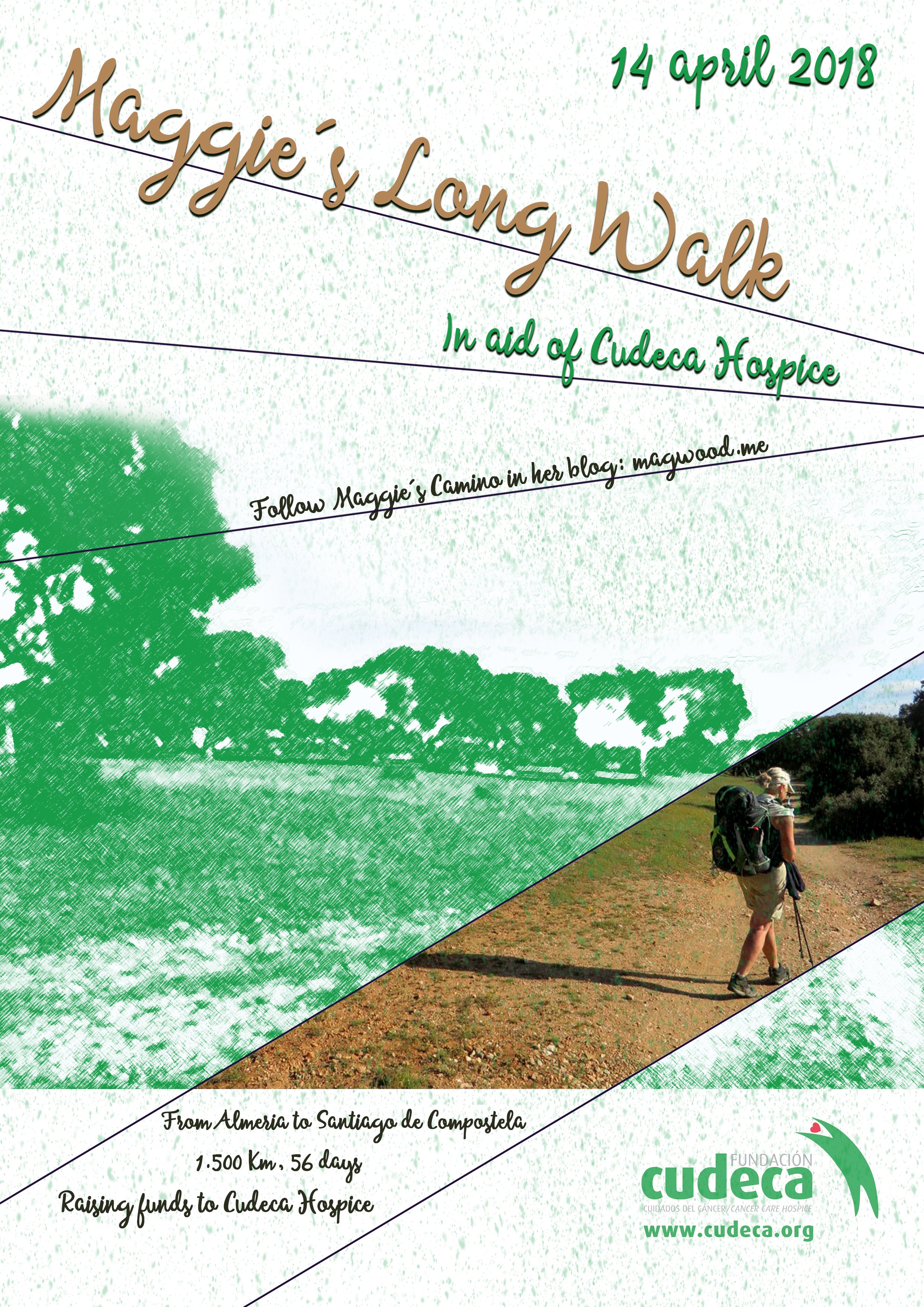 Maggie´s spring walk through Spain and Portugal from Almería to Santiago de Compostela passes through stunning countryside, along tracks bordered by glorious wild flowers, and through cities such as Granada, Córdoba, Trujillo and Salamanca in Spain, Amarante, Guimaráes, Braga and Viana de Castelo in Portugal, whilst raising sponsorship funds for Cudeca Foundation.