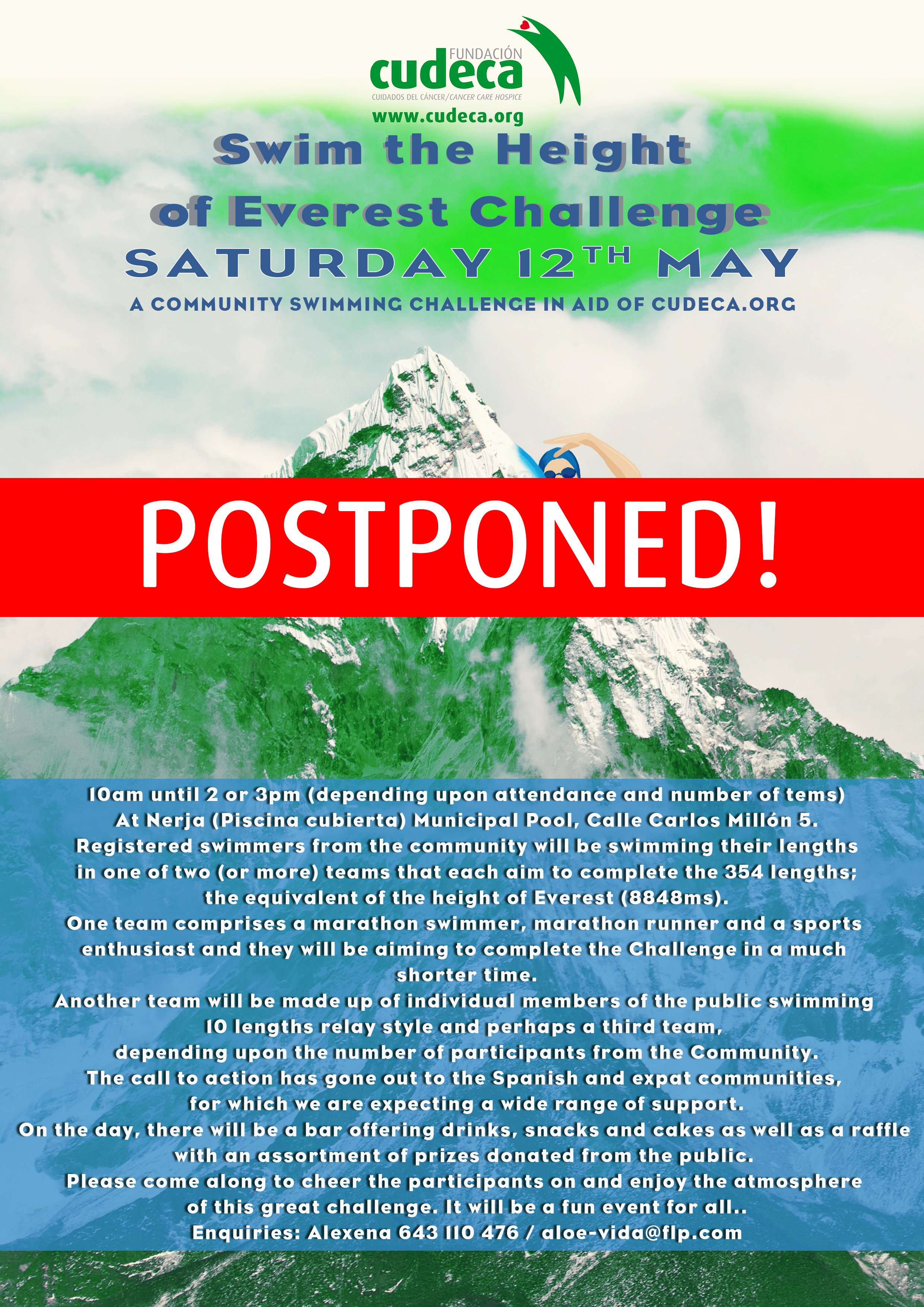 We regret to inform everyone that the charity event “Swim the Height of Everest” to take place in Nerja on 12 May 2018, is now postponed until after the summer.