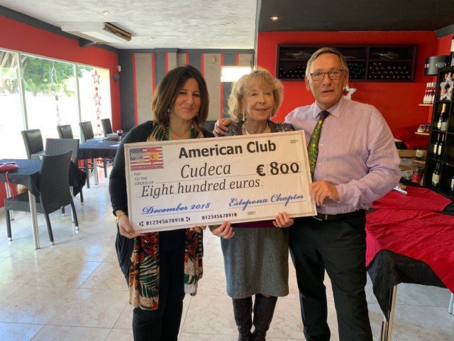 On Friday, December 14th, The American Club of the Costa del Sol, Estepona & Sotogrande Chapter gathered at the Le Petit Paris Restaurant in Estepona for their Christmas lunch to donate a cheque of €800, which will be used to continue the free and professional care provided to cancer patients without possibility of cure by our hospice.