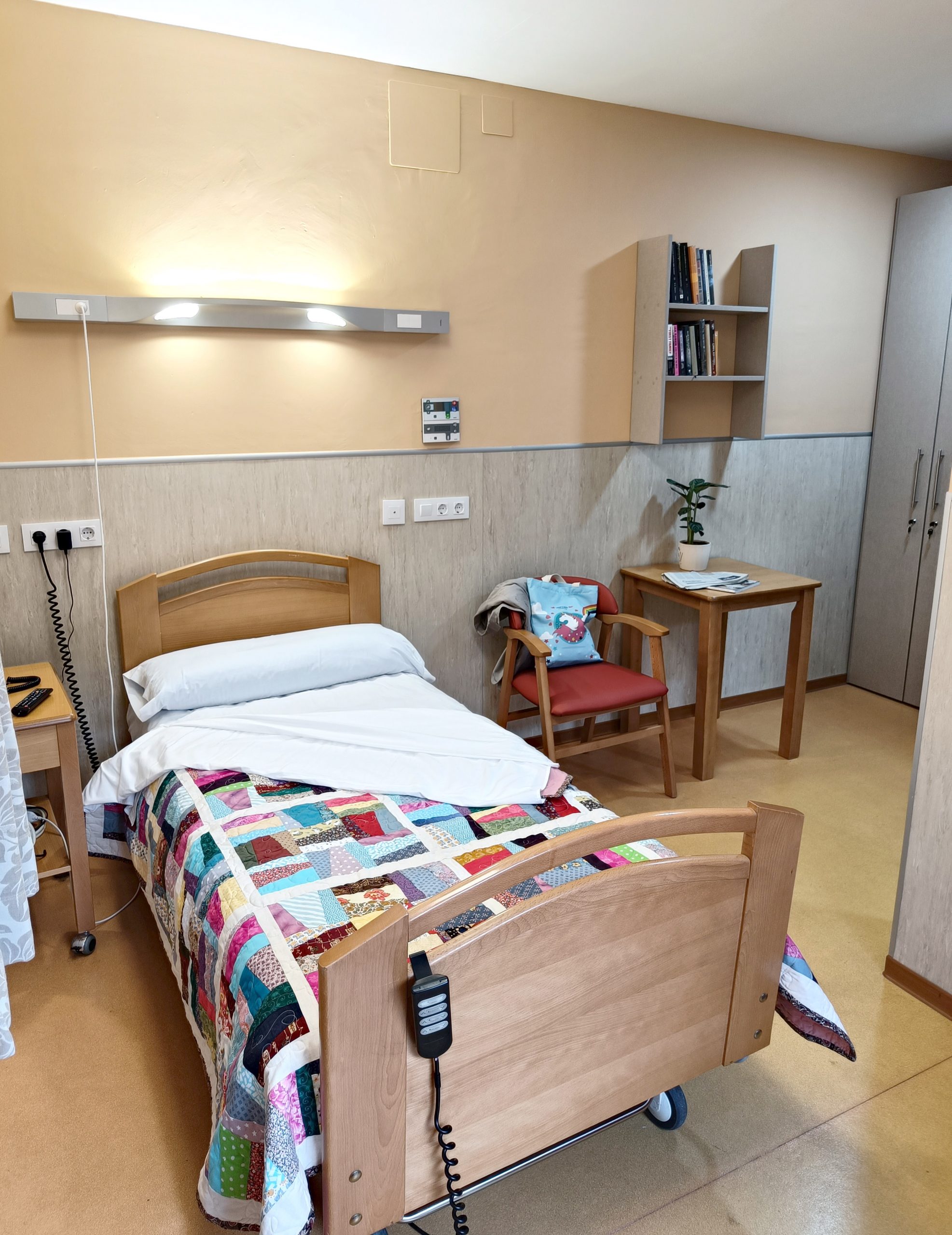 Una habitación que pusimos en marcha este año para poder atender mejor a la demanda de nuestros cuidados que siguen creciendo cada año. Así tu aportación permitirá mantener este espacil tan especial de cuidados profesionales junto con amor, serenidad y acompañamiento cercano, elementos esenciales en los últimos momentos de la vida.